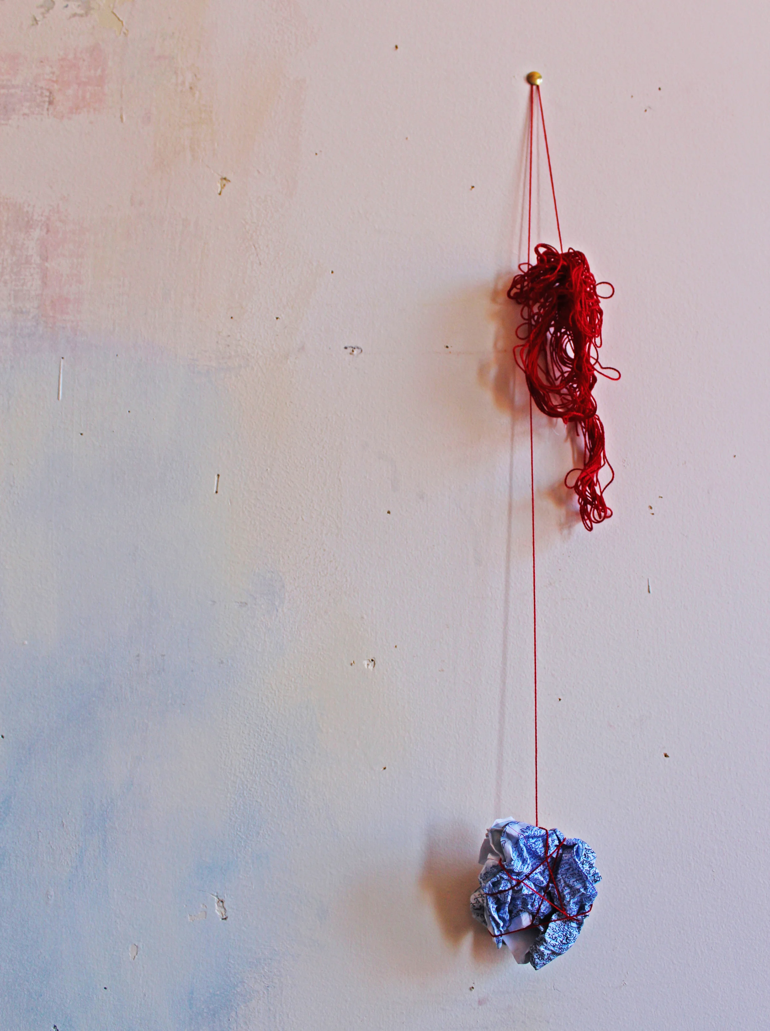 I am obsessed with all kinds of lines, messy and dense, sinuous and graceful, graphic and straight, parallel and perpendicular. I also love how lines can become threads and threads can transform into fabric, or mend a tear or can become metaphors for the fabric of our lives. Red lines seem to reoccur in my work over and over again, a symbol of me, tethered to life which seems like a big mess of tangles for me to unravel.